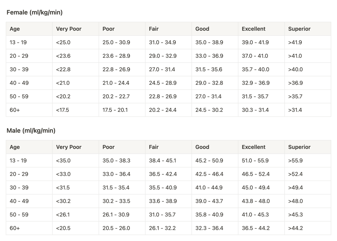 VO2 max benchmarks